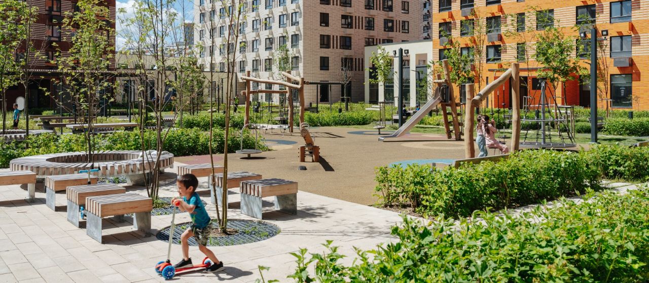 На первых этажах домов откроются магазины и необходимые сервисы, в каждом дворе разместятся детские и спортивные площадки, а через весь район протянется несколько пешеходных бульваров.